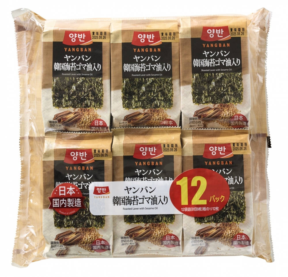 12袋入りの大容量な韓国のり、おやつやおつまみなど幅広くお楽しみいただけます。